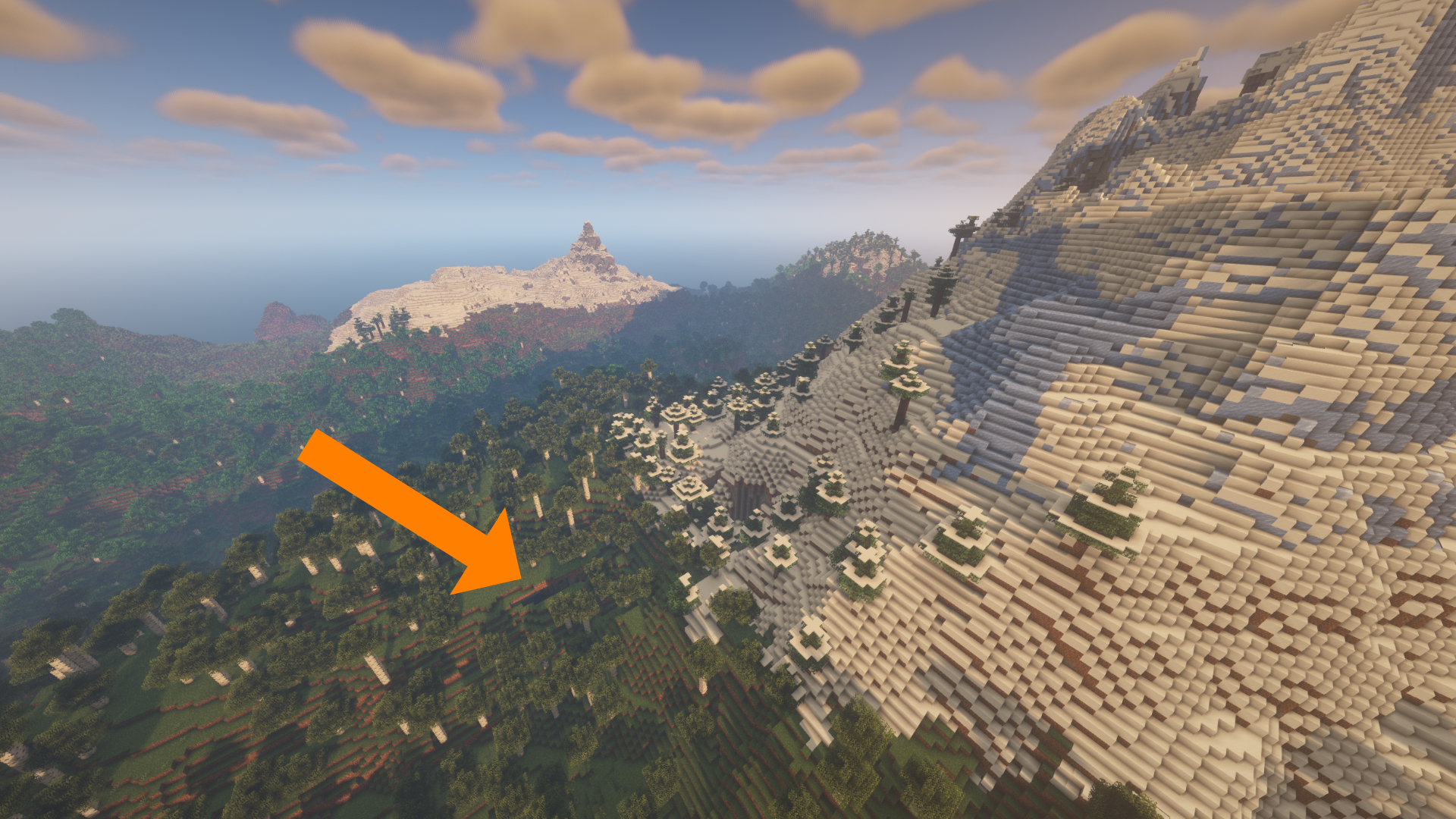 | Jagged Peaks Biome (-600, -50) | Plains Village (288, 256) |
