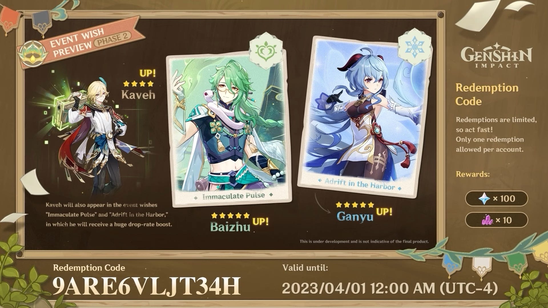 Current event: Version 3.6 brings reruns for Nahida and Nilou! Up next: Baizhou and Kaveh debut alongside a Ganyu rerun