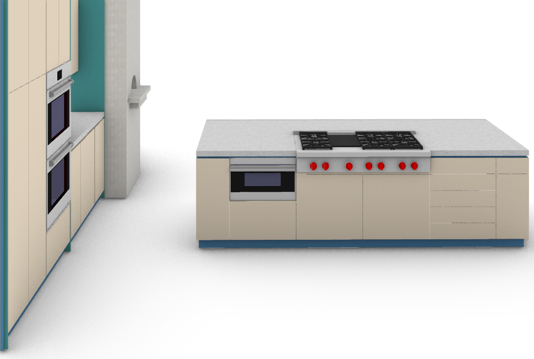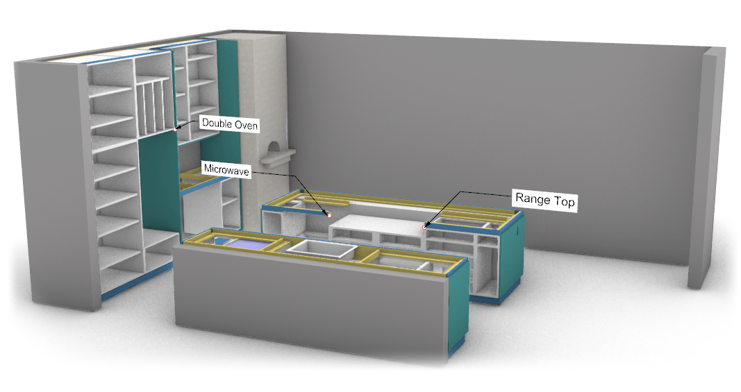 Download the model of a partial 3D plan of a kitchen. You will need to add the microwave, range top and double ovens.