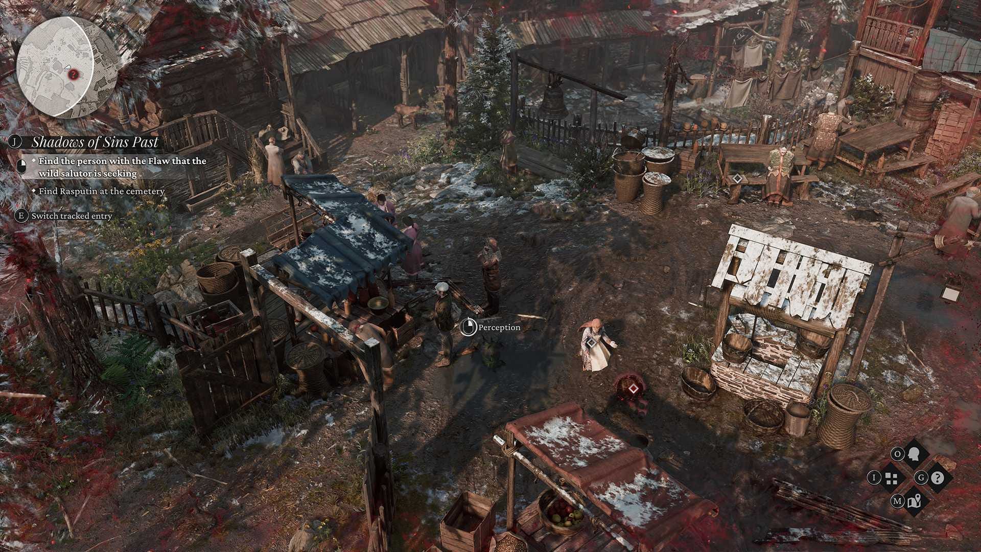Given the time period, I wasn't wholly surprised to find that the man Wiktor's looking for is actually real-life Russian mystic Grigori Rasputin. Rasputin is one of a several historical figures to make an appearance in The Thaumaturge, although what role he'll play in the wider story is currently unknown. For now, though, Wiktor must find his current whereabouts in this cold, muddy village, and to do so he calls upon his Thaumaturgic skill of perception, revealing a highlighted trail of Rasputin's last movements. It's Batman's detective vision or Geralt's Witcher sense by another name, essentially, but its presentation and otherworldly connection to his powers as a Thaumaturge make it feel part and parcel of the world around him.